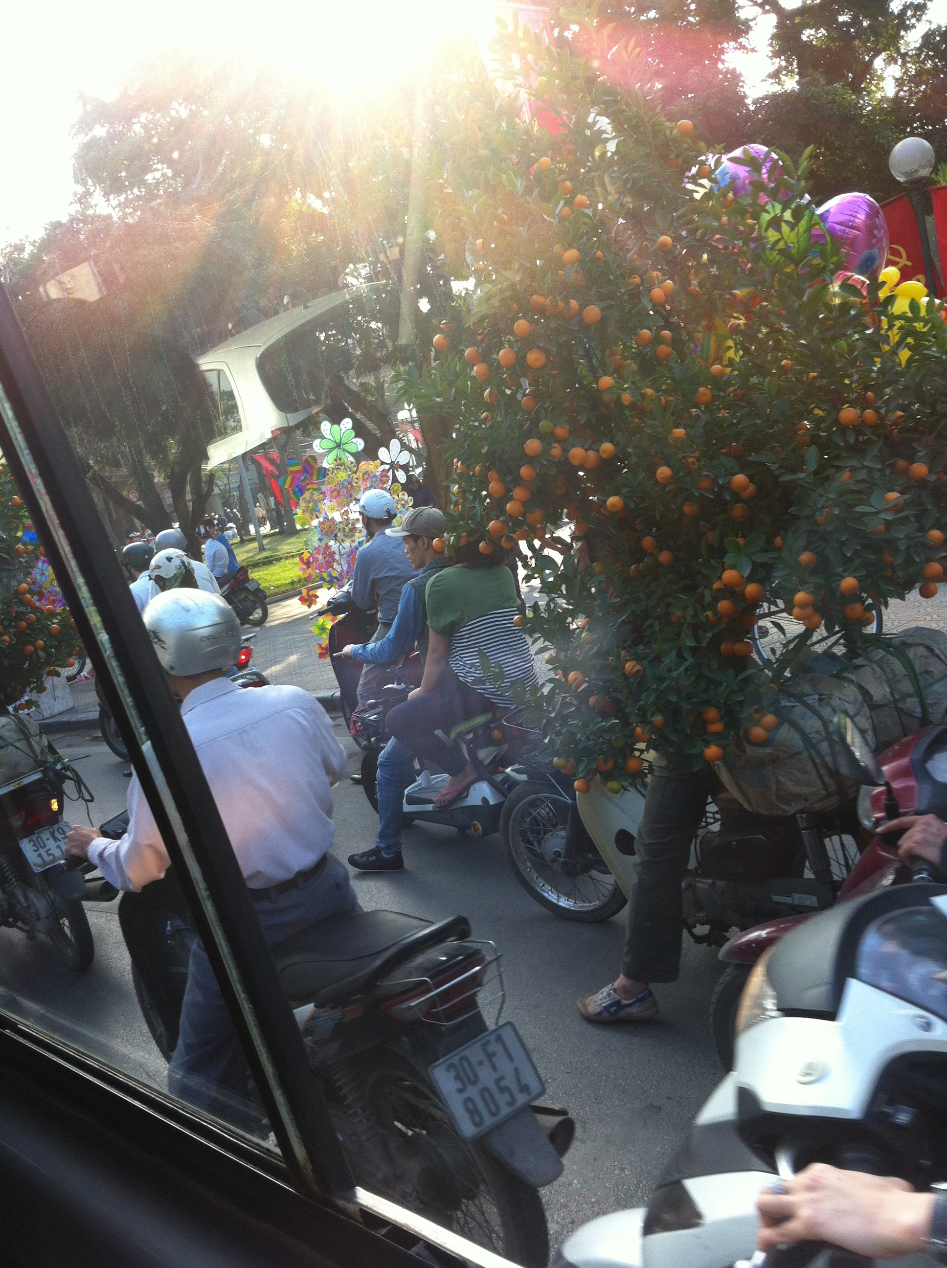 道路もやっぱり新年の準備で、大荷物積んでたりお土産積んでたり売り物のお花を山と積んでたり(比喩以上の盛り方で)ご馳走用の鳥(生きてる)を括りつけてたりしてました。